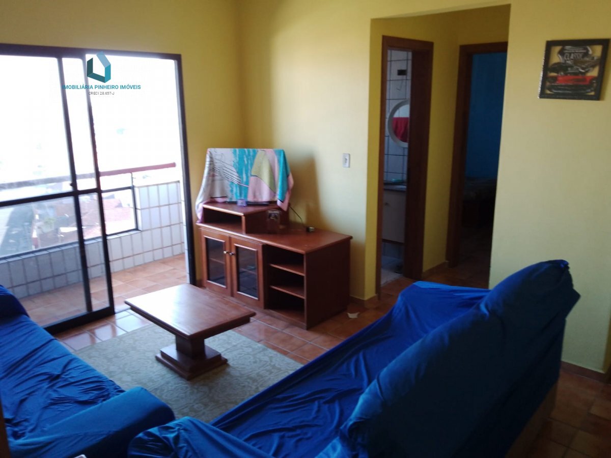 Apartamento no Bairro Vera Cruz em Mongaguá 100 metros da praia com um dormitório, sala, cozinha, banheiro, área de serviço e vaga de garagem.