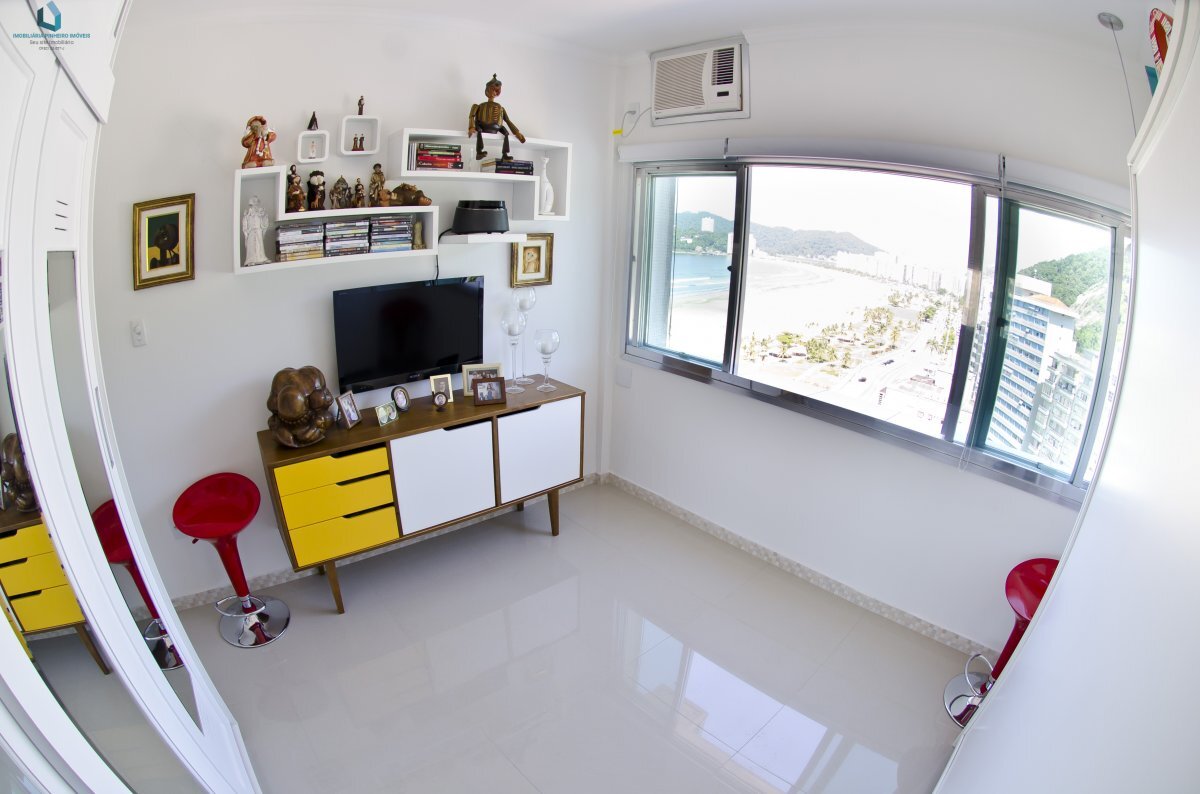 Excelente apartamento, com vista para o mar, de 40m² com um dormitório, sala, cozinha e banheiro. Localizado na praia Itararé em São Vicente próximo ao teleférico. Aceita financiamento bancário.
